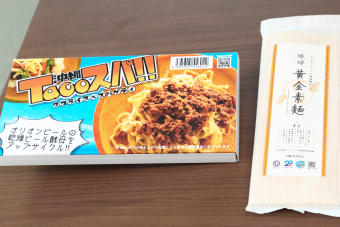また、沖縄は県民の所得水準が相対的に低く、子供の貧困率の高さにもつながっています。それを問題視した専攻科の学生が、創造システム工学実験の一環として取り組んだのが、「Tacoスパ」の開発でした。名護市にあるオリオンビールがビール製造工程で生成される栄養価豊かな麦芽粕(ばくがかす)が廃棄されていることに目をつけ、その麦芽粕をタコスソースに使用し、乾燥酵母を練り込んだスパゲティ麺の開発を試みたプロジェクトです。すでに商品化に辿り着き、1パックを売り上げると同時に、地元の名護子ども食堂(無料または安価で栄養のある食事を貧困層の子どもたちに提供する社会活動)に、50円が寄付される仕組みを導入しています。