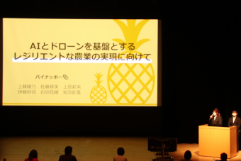 そして私の校長着任後に、本校で長く活躍されてきた眞喜志副校長や神里副校長、伊東副校長、田中副校長、与那嶺副校長たちの協力を得て本格整備し、令和5年にスタートしたのが「観光・地域共生デザインコース」と「多文化共生・国際展開高専」です。観光は気候や自然環境に恵まれた沖縄の主要産業であり、多くの雇用と税収、経済活動を生んでいます。観光業は県外客に1度は足を運んでもらうことに加え、リピーターになって頂くことで安定成長が図られます。また、同時に他の地域産業が元気であってこそ、観光客を惹きつける沖縄であり続けることが可能です。そこで観光・地域共生デザインコースでは、DXで沖縄の観光ビジネスや地域産業を支援する人材の育成を目指します。こうした活動はコースを設定する以前から行われています。一例を挙げれば、沖縄県の特産品であるパイナップルを栽培する農家にAIとドローンを活用した収穫支援ソリューションを提供しようとする学生によって結成されたチーム「パイナッポー」が、高専GCON2022において最高の栄誉である文部科学大臣賞を獲得しています。