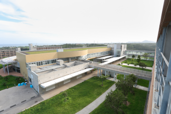 昭和期に連続的に開校した他の国立高専の質実剛健な印象の学舎とは異なり、名護市辺野古の広大な丘陵地に欧米の大学のようなキャンパスが広がっています。