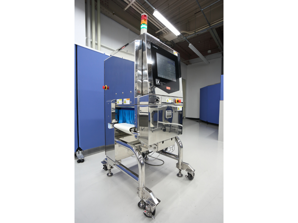 X線検査装置IXシリーズ。従業員の創意工夫を製品に反映する風土のもと、ガラスや骨などの低密度異物も逃さない高精度な検出を実現。また、京大との連携でアニサキス専用の検知波長も開発。生食の安全を守る装置として、幅広い現場に導入されています。