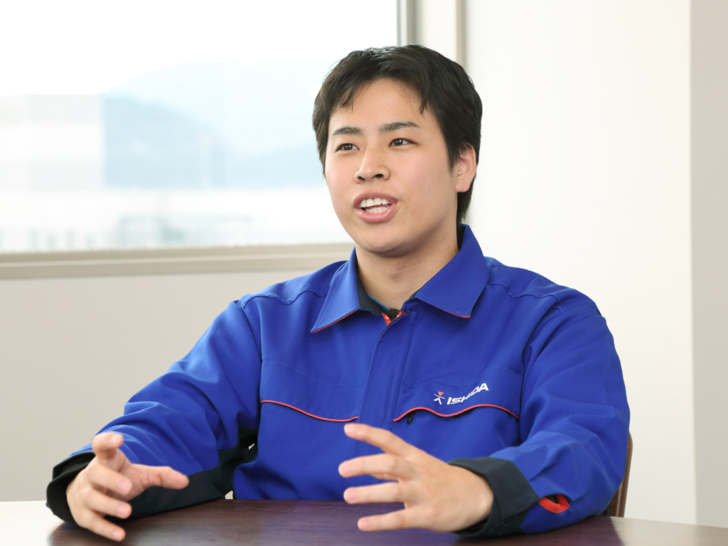 幼少期からLEGOなどで遊ぶのが好きだった上に、中学生になるとはんだごてを使ってラジオを製作する“技術”の授業で、ものづくりの楽しさに目覚めた。また、母親がかつてゲームプログラマーだったことからプログラミングに興味を持ち、高専を受験。授業では難易度の高い試作試験を一歩一歩クリアしていく達成感に熱くなった。その後の就活時期にイシダの組み合わせ計量機に多くの工夫が凝らされていることを知り、自ら関わりたいと思い入社を決めた。