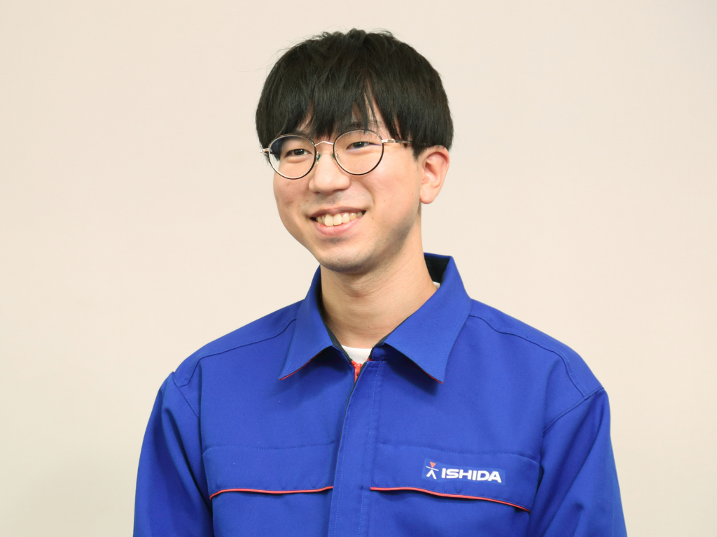 中学卒業後は実家から時間をかけずに通学出来るできる学校が3校しかなく、その中で最も自分を成長させてくれそうな進学先として高専に入学した。選択した流通情報工学科では、ITに加えて生産者から消費者まで商品が流れていく流通業界についても学ぶ。イシダへの入社を志望したのは、インターンシップを通して、それまでに学んできた食に関わる生産技術の知識が活かせると実感できたから。穏やかな雰囲気の社風や、希望配属先を尊重してもらえる点も魅力的でした。