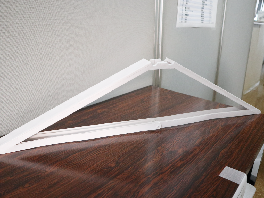 製造面では、3Dプリンタ(※2)によって製作される部品ならではの再現性の高い複雑形状を活用し、軽さ・強さ・柔軟性のバランスを最適化しました。素材にはPETG(※3)を採用し、耐衝撃性と安全性を確保しています。開発では「固定しやすく外しやすい」、「自由な角度と造形の安定性」といった要件の解決に取り組み、形状・肉厚・内部構造・公差を段階的に最適化しました。
