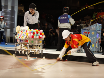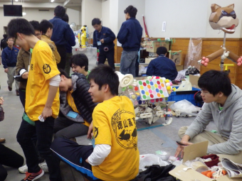 1回戦は八戸高専との対戦でした。ドリィの速さは相手のロボットより勝っていたものの初戦の緊張からか操縦ミスが目立ち、前半は相手にリードされてしまいましたが、後半で何とか追いつき辛くも勝利しました。