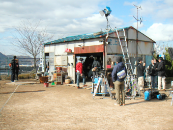 この映画の試合シーンでは高専ロボコンの競技を体験した私達でも、主人公チームに感情移入して実際の試合さながらのトキドキ感があります。映画ではあまり分かりませんが、古厩監督の映画作りの特徴は、3分間の試合をカット無しの通しで撮影されるところにあります。そのため競技シーンの撮影には多くの時間を要しました。観客役のエキストラとして参加した周南市民の一部は撮影が夜遅くになったために途中で帰宅される方もいらっしゃった程です。このような手法での撮影だったこともあって、ウルトラCまがいの勝ち方なども偶然起こることがあり、「BOXフンド」が勝利する度に、会場から俳優の皆さんに向かって「良く頑張った」という賞賛の拍手が自然と巻き起こりました。映像の中の観客の表情にはやっと無事にシーンを撮り終えた安堵感も入り交じって、実際の競技さながらの緊張感と盛り上がりが表現されています。