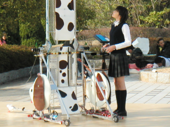 徳山高専の吹奏楽部が応援演奏を行うシーン。「葉沢里美」役の長澤まさみさんが操縦するロボットは、栃木県小山市の小山高専から山口県徳山市の徳山高専に輸送された「はこじゃらし」(映画では「BOXフンド」)