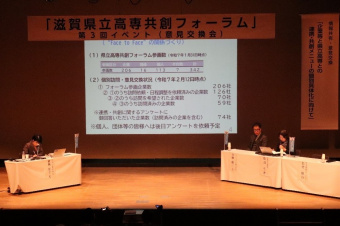 冒頭では、岸本織江滋賀県副知事から開会の挨拶があり、9月の北村氏の初代校長予定者内定をはじめ、12月からキャンパスの造成工事がスタートしていること、教員の募集を開始していること等を述べられました。次いで、櫻本直樹野洲市長から、今回のイベントの開催地であり開校予定地である野洲市を代表して、「県立高専を核に世界に誇る人材・技術・文化を、ここ野洲市から滋賀、日本、そして世界へ発信したい」という夢が語られました。
