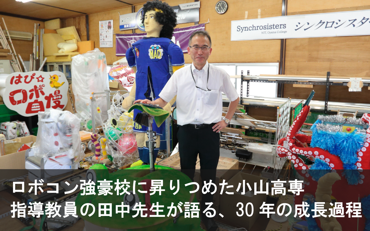 このように小山高専が近年のロボコンで優れた成績を収め続けている背景には何があるのか、代々のチームに継続される強みは何なのか。これらの問いに、同校で30年にわたってロボコンチームを指導し、現在は大会の競技専門委員を務める田中 昭雄 先生(小山工業高等専門学校 電気電子創造工学科 教授)にお答え頂きました。併せて、今年ロボコンへ参加するAチーム・Bチームの学生代表2名にも、ロボコンに賭ける想いをお聞きしました。