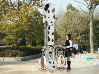 2012年高専ロボコン「ベスト・ペット」でロボコン大賞を受賞。画像センサーを駆使し、トレーナーのジェスチャーを認識し反応する。