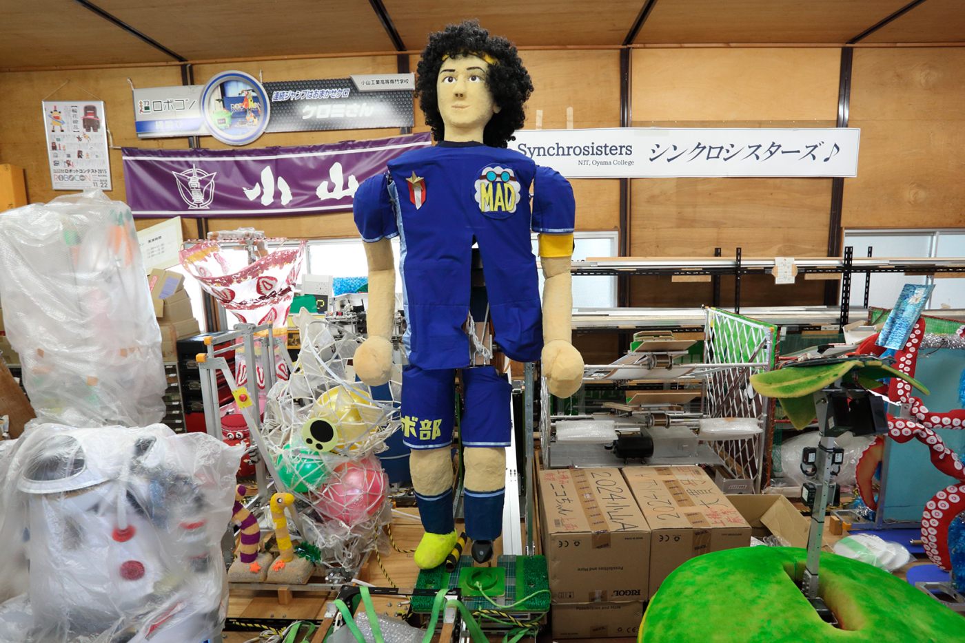今では、斬新な技術やアイデアに挑むカラーは小山高専ロボコンチームの伝統になっています。また、見た目にもこだわってデザイン性を重視してきた成果だと思いますが、愛らしかったり動きが凝っていたりする本校のロボットたちは、数々の映画やテレビ番組に出て魅力的なキャラクターで使ってもらい、多くの視聴者の目に触れる機会を得ています。