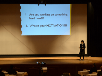 優勝したのは徳山工業高等専門学校情報電子工学科2年生の石田 薫子(かおるこ)さん。聴衆に向けた「あなたのモチベーションは何ですか?」という問いかけから始まるモチベーションをテーマとしたプレゼンテーションは、質疑応答を含めて堂々たる語り口とその完成度の高さで会場を惹き込んでいました。