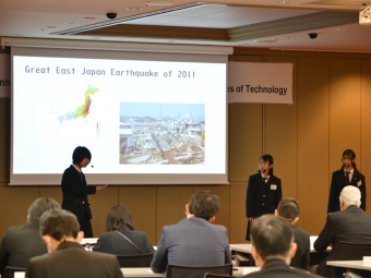 奈良高専チームは災害大国である日本における防災対策や災害管理に関するアイデアについてプレゼンテーションを行いました。