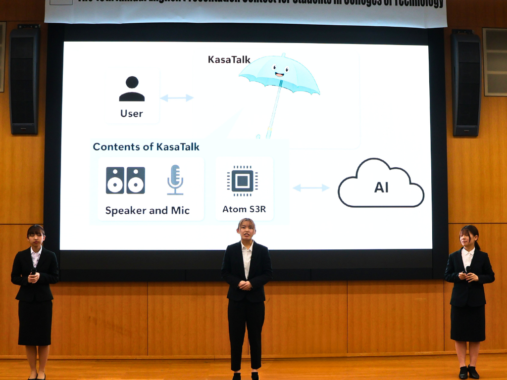 | 石川工業高等専門学校 | KasaTalk: Making Rainy Days Fun | TAJIMA, Miho (5) HASEGAWA, Itsuki (5) NATSUSHIMA, Riho (Adv.2) | 3位 |