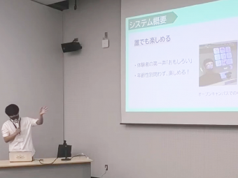 プロジェクションマッピングを用いた仮想的なメイクの独創性や、オープンキャンパスで子供から大人まで様々な方が利用した意見をシステムに反映したことが評価され、優秀賞に選ばれました。